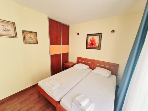 В APP 04 + 2: Спальня з французьким ліжком, вітальня з розкладним диваном, двома розкладними кріслами і кухонним блоком, холодильник, кабельне телебачення, інтернет, кондиціонер в кожній кімнаті, фен, праска, прасувальна дошка, балкон з видом на море, сушарка, душова кімната, пральна машина. Максимальне розміщення - 6 осіб.