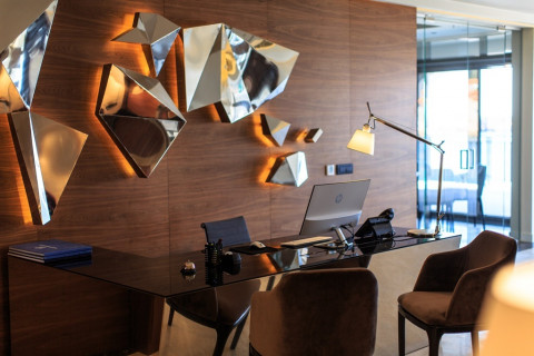 В Presidental Suite: окремий вхід в номер, роздільні ліжка та софа, зона відпочинку, кондиціонер, супутникове ТБ, Wi Fi інтернет, сейф, міні бар, електричний чайник, санвузол з душовою кабіною, тераса з видом на море. Максимальне розміщення: 6 чол. Площа: 125 м2.