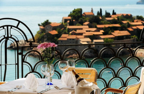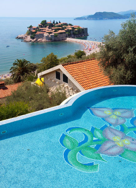 В 300м від галькового пляжу, навпроти одного із знаменитих готельних комплексів країни, «Святого Стефана».