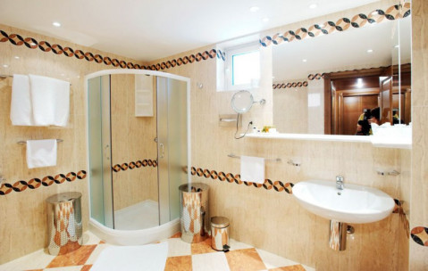 EXECUTIVE № 110: Розміщення 2+2 pax. Передпокій та дві кімнати. Більшою кімнаті ліжко 2000 х 1700, крісла та журнальний столик, телефон, телевізор, міні-бар. У меншій кімнаті ліжко 2000 х 1700, телефон, телевізор, міні-бар. У ванній - душова кабіна. (40 м2.).