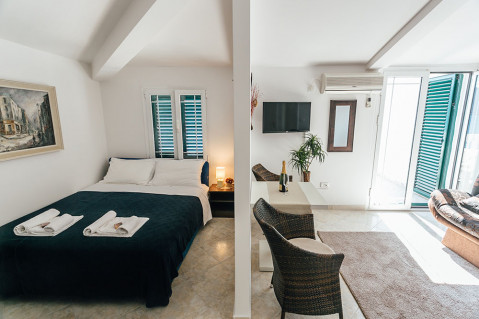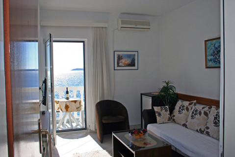 В APP 04 SV: вітальня з диваном, в спальні французьке ліжко, повністю обладнана кухня, кондиціонер, кабельне ТБ, Wi Fi інтернет, санвузол з душовою кабіною, балкон з видом на море. Площа: 45м2. Максимальне розміщення: 4 чол.