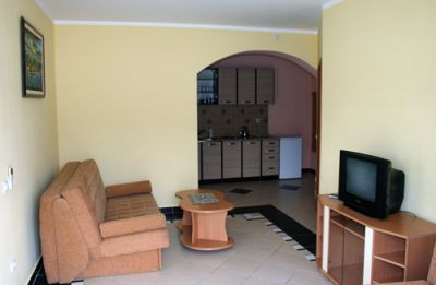 Для розміщення пропонується три-та чотиримісні студії і апартаменти. WI-FI інтернет тільки в ресторані (безкоштовно), сейф у господарів, зміна рушників один раз в три дні.