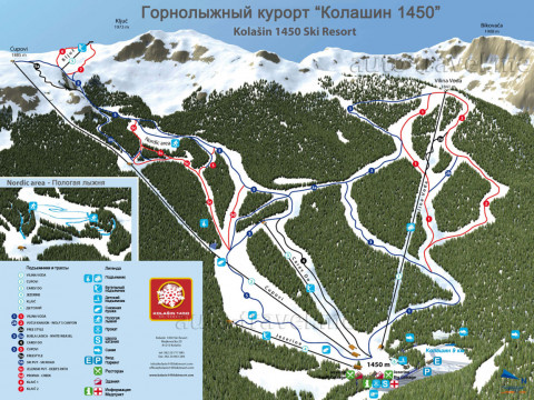 На гірськолижному курорті «Kolasin 1450» всього трас 7, беручи до уваги переходів від траси до траси. Всі вони прорубані в лісі і переплетені між собою, що дозволяє кожен раз міняти маршрут спуску. Найнижча точка знаходиться на висоті 1450 метрів над рівнем моря. Найвища - тисячі дев'ятсот сімдесят три метри. Але переважна більшість людей починають спуск з висот близько 1840-1850 метрів. Цілина є тільки в просіках під підйомниками і на вершинах, де немає лісу. Інструкторів, які можуть провести по цілині, немає зовсім.