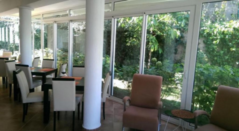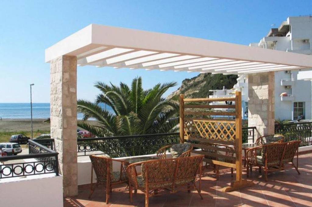 Триповерхова будівля, велика тераса з видом на море, рецепція, бар, поруч піцерія. На 2-3 поверхах знаходяться 9 номерів і 3 апартаменти.