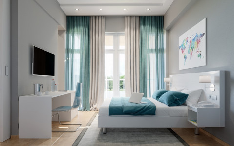 В 2BR JUNIOR SUITE: 42кв.м. Номер з двома спальнями з ліжком розміру "queen-size», додатковою спальнею з двома односпальними ліжками та односпальним розкладним диваном - ідеальний варіант для великих сімей. Всі номери з видом на сад з балконом або терасою, деякі номери можуть бути розташовані на першому поверсі.