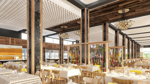4 ресторани (головний ресторан EAT RESTAURANT, ресторан традиційної балканської кухні BALKAN A LA CARTE RESTAURANT, італійський ресторан L'OSTERIA A LA CARTE RESTAURANT, гриль-ресторан THE KNIFE A LA CARTE RESTAURANT - за додаткову плату), 7 барів (лобі бар THE LOBBYIST, паб PUBBAZULOS BAR, бар MAGNOLIA LOUNGE BAR біля будівлі Kiwi, пляжний бар MARLEY LOUNGE & BEACH BAR, 3 бари біля басейнів - SUNRISE POOL BAR, SUNSET POOL BAR, PREMIUM POOL BAR).