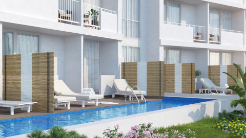 В 2BR SWIM UP JUNIOR SUITE: 42кв.м. Номер «У кромки басейну» з 2 спальнями, ліжком розміру "queen-size" та додатковою спальнею з двома односпальними ліжками і односпальним розкладним диваном, а також плавальним басейном всього в декількох кроках від тераси.