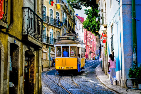 По вузьких і нерівних вулицях центральної частини Лісабона прокладені трамвайні маршрути, які обслуговуються вже більше ста років. Знамениті жовті трамваї належать Лісабонській трамвайній мережі. Особливо популярний маршрут №28. Він проходить через усі історичні райони міста, робить безліч крутих поворотів і заїжджає в дуже колоритні місця. Трамвай №28 постійно повний туристами.