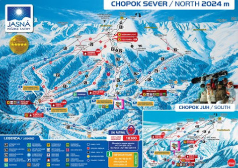Курорт пропонує 57 км трас на північному і південному схилах Хопко. Його можна умовно поділити на чотири зони катання: Отупне (1140-1430 м) - район для початківців; Заградки (1030-1450 м) - «червоні» траси, що ведуть від Кінські Грун і Прехіба; Хопок-Північ (1230-2020 м) - в основному «червоні» траси, є парочка «чорних», довжина трас - до 2 км; Хопок-Південь (1160-2020 м) - «червоні» і «чорні» траси, катання в основному вище рівня лісу, є можливості для цілинного катання.
