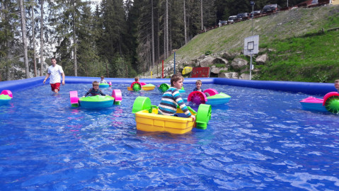 Кроме мероприятий внутри отеля свободное время можно хорошо провести на природе около отеля. Для этого построена детская площадка с цветными деревянными лестницами и «лазалками», горками, скалолазной стеной и трамплином. В этом году площадку расширили, устроили травяной газон, обнесли деревянной оградой. Летом дети могут кружиться на ретро-карусели.