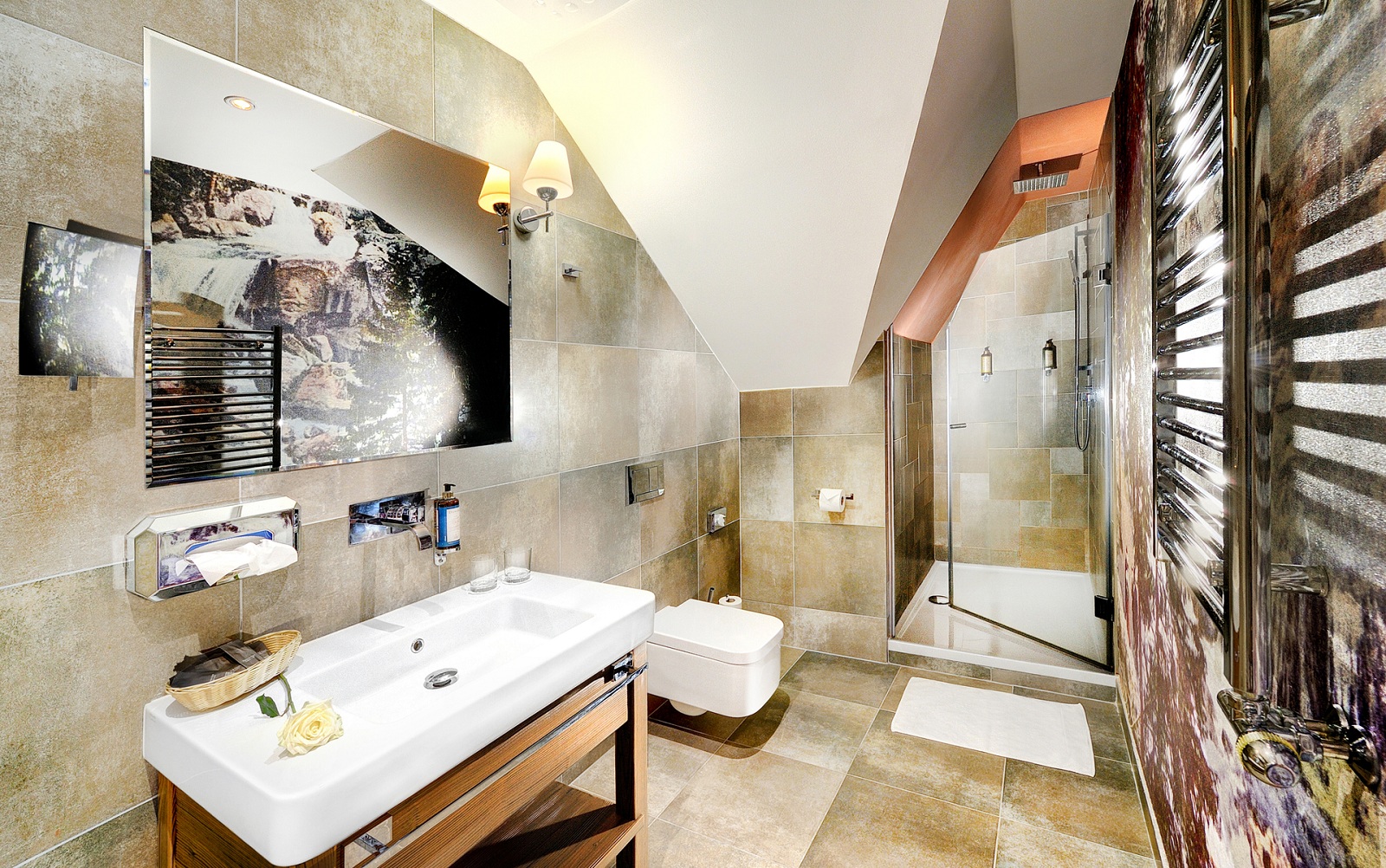 Номер CLASSIC VALLEY VIEW. Размер номера: от 20 м2 (включая санузлы). Номера с красивым видом на долину и классическими удобствами в стиле модерн: с кожаными, деревянными, золотыми аксессуарами и кремовыми обоями.