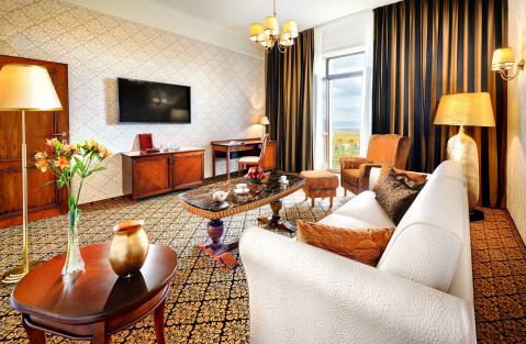 Номер CLASSIC ROOM - классический комфорт с традиционными чертами стиля модерн. Стильные номера, дополненные кожаными, деревянными, золотыми аксессуарами и кремовыми обоями, представляют собой элегантное сочетание свежего нового дизайна в стиле модерн с историческим пространством нашего отеля. В номере: ванная комната с ванной или душем, спутниковое телевидение и телефон, мини-бар и сейф, халат и тапочки, бесплатный WiFi.