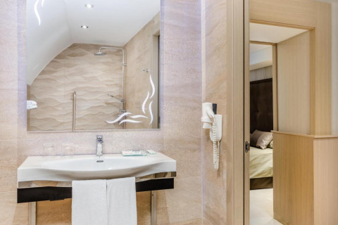 Звукоизолированные номера с красивым кафельным полом оснащены системой отопления. К услугам гостей сейф и письменный стол, а также собственная ванная комната с феном и туалетно-косметическими принадлежностями.